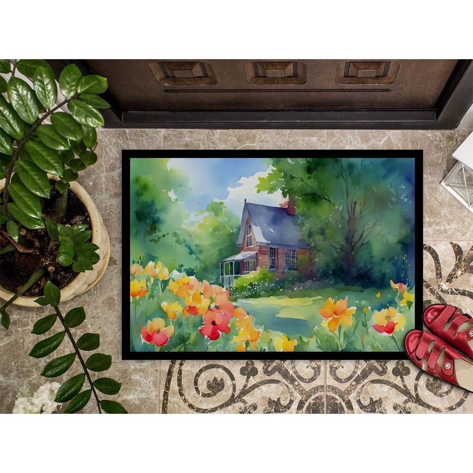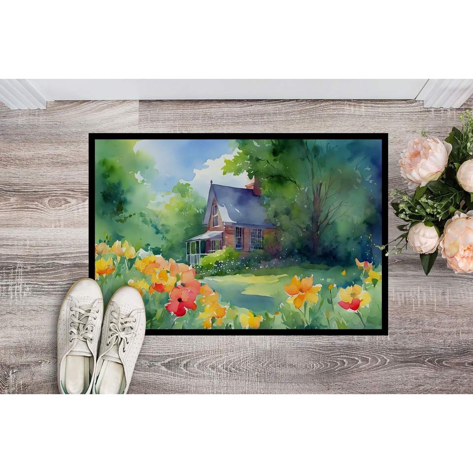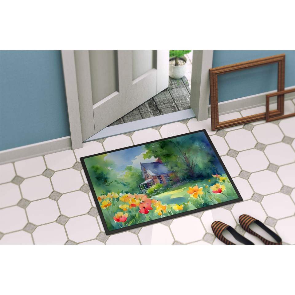 Massachusetts Mayflowers Watercolor Doormat Non-Slip Indoor/Outdoor Entryway Rug Low Pile 24H X 36W Washable Front Door Mat