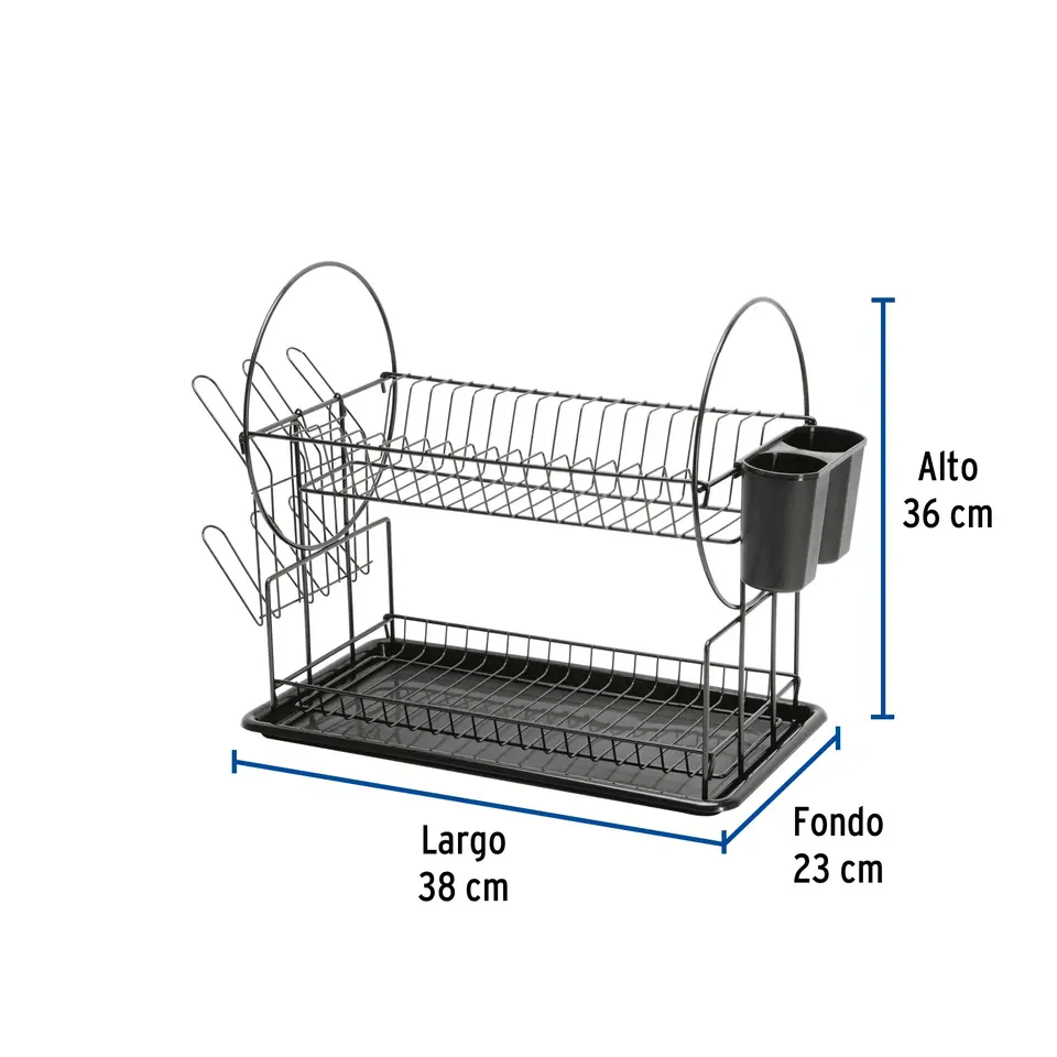 Master 12-piece black steel dish drainer with 2 levels