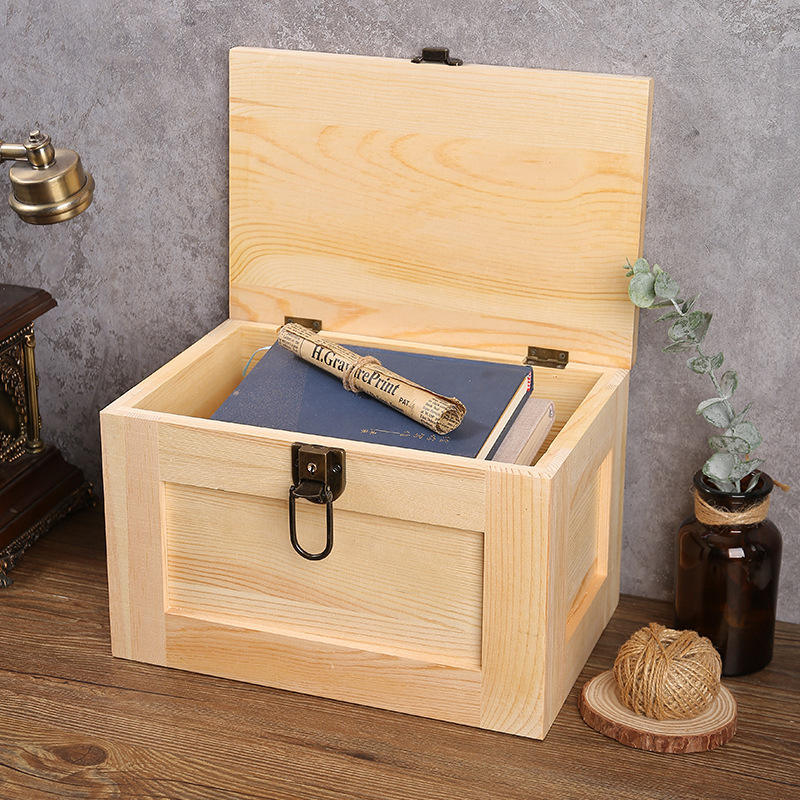Master Gu Solid Wood Storage Box With Lock For Kids Treasure Home Desktop Organizer Natural Wood Color 5070