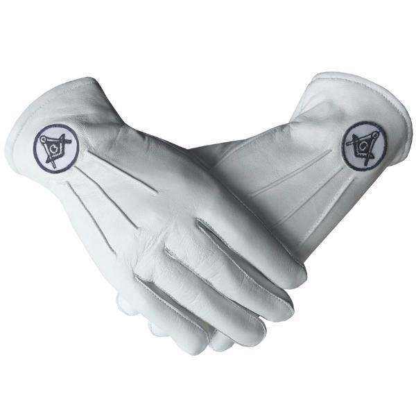Master Mason Blue Lodge Gloves with White Cotton Machine Embroidery Freemason Regalia with Leather and Ribbon Foundation Fabric