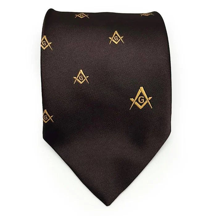 Master Mason Blue Lodge Necktie Brown Tie with Square & Compass 2025 Masonic Regalia Freemasons Casual Style OEM Serviced