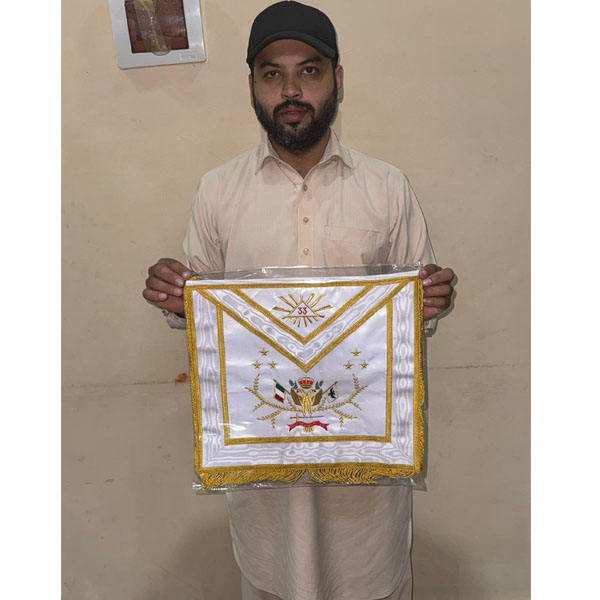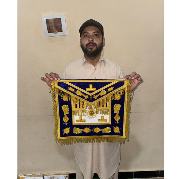 Master Mason Blue Lodge Regalia Set Hand Embroidery Bricks Masons Apron and Sash Set Freemason Apron with Red Moire Ribbon 2026