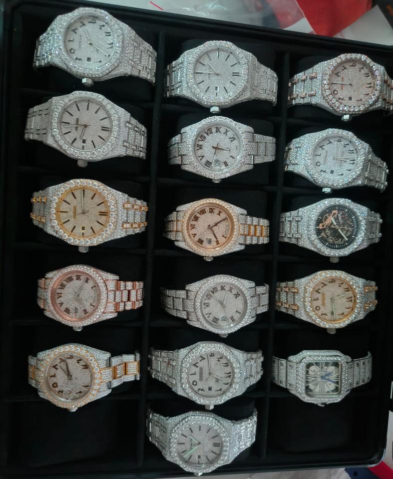 Gold Bezel Luxury Custom Watch Iced-Out Moissanite Thorn Blue Hip Hop Antique Business Style Sapphire Glass Dial Leather Strap