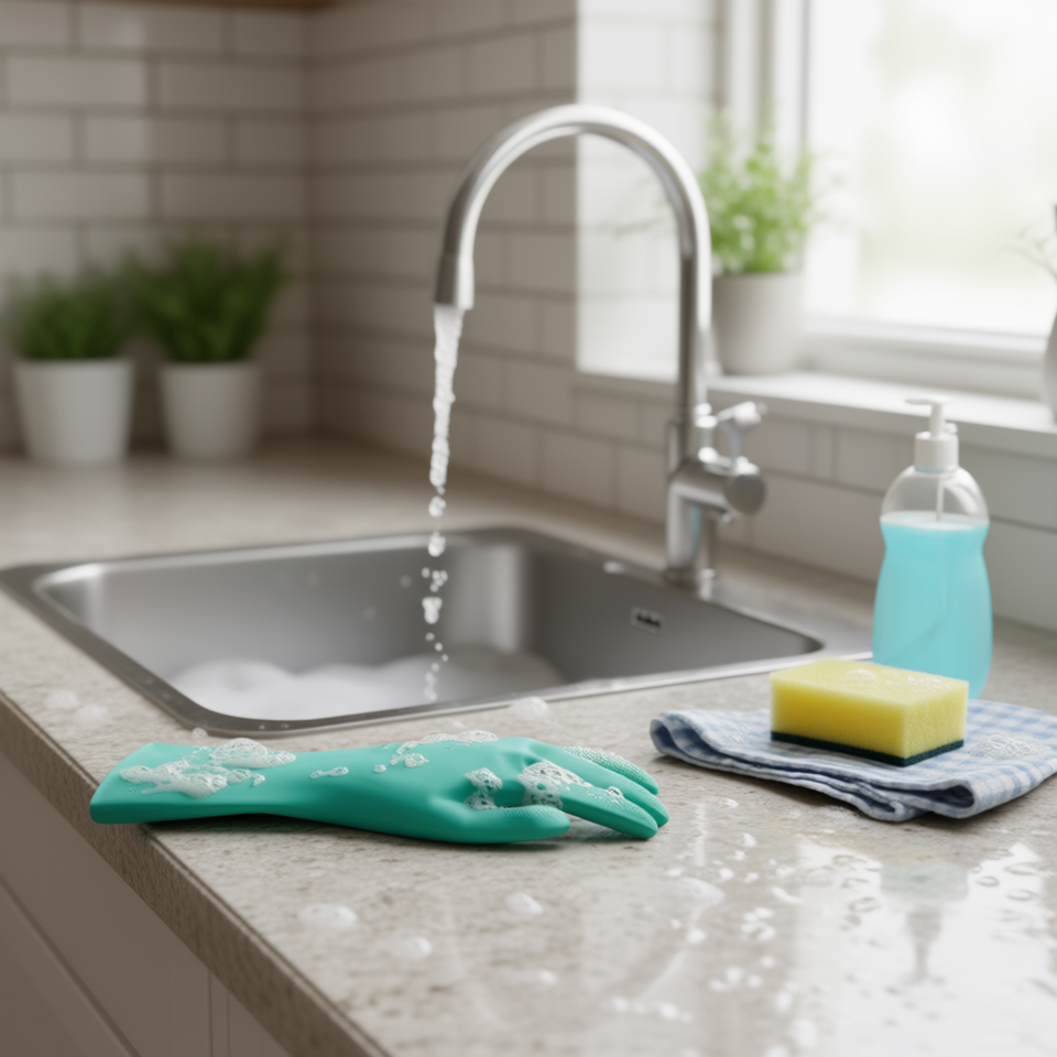 Truper CH Green Nitrile Cleaning Gloves, Medium Thick, Waterproof, Non-Slip Grain Texture, PVC Outer, Silicone Material, Ideal f