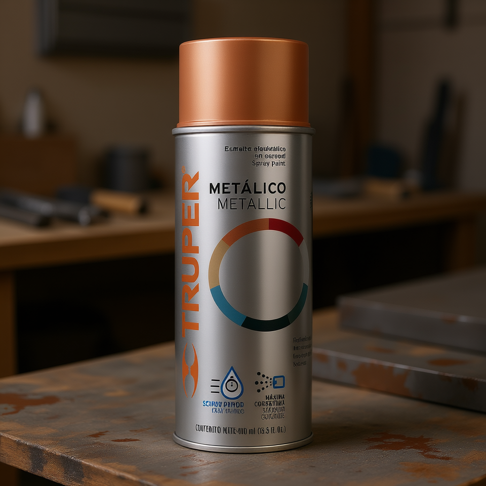 Metallic Spray Paint, Copper Finish, 400 Ml, Acrylic-Based, Truper Brand, Aerosol Can, High Coverage, Indoor Outdoor Use, Mexico