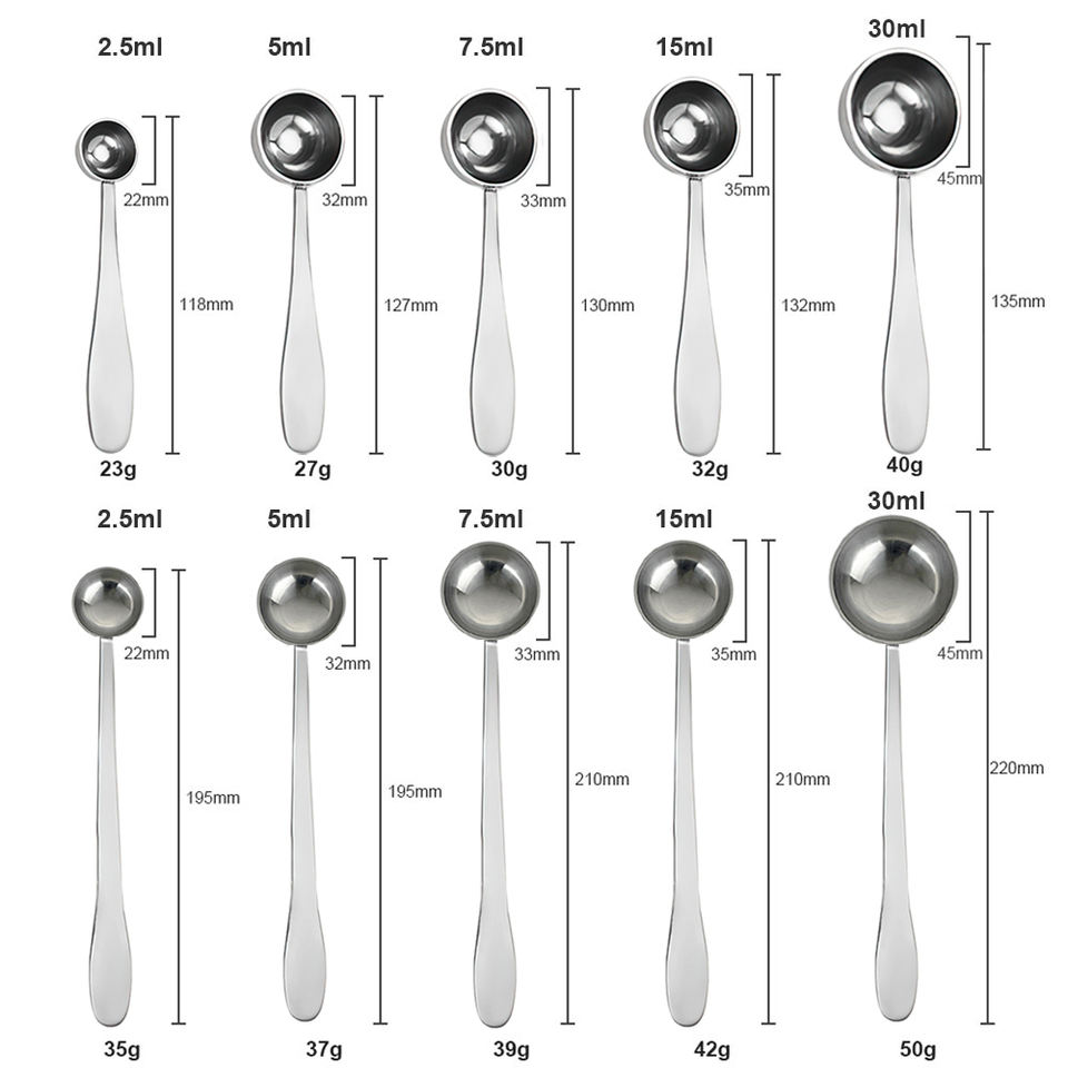 Matcha Measuring Spoon Stainless Steel Measuring Metal Scoop 2.5ml 5ml/5g Small Round Gold Measuring Spoons