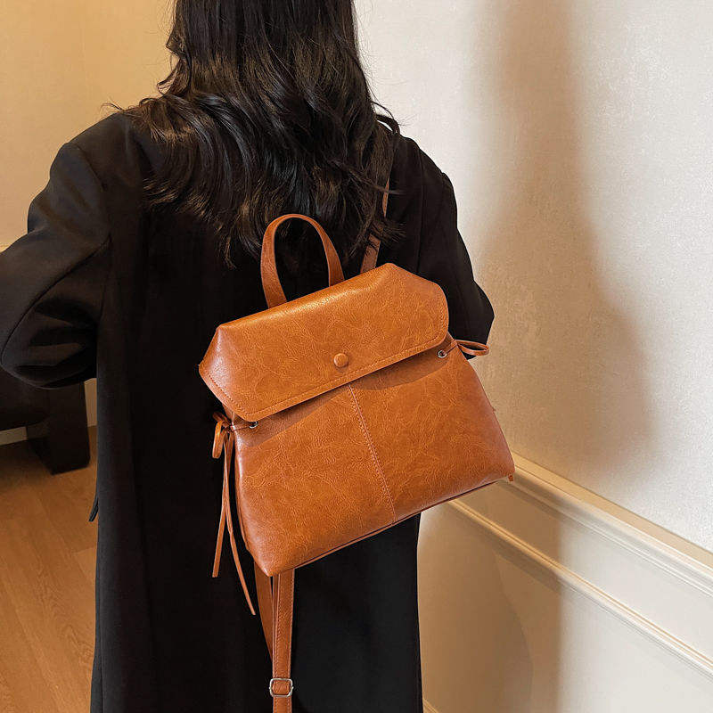 Matsujin Customizable Size Open Embroidered Women's Portable Waterproof Square Backpack Bags PU Zipper Closure Interior