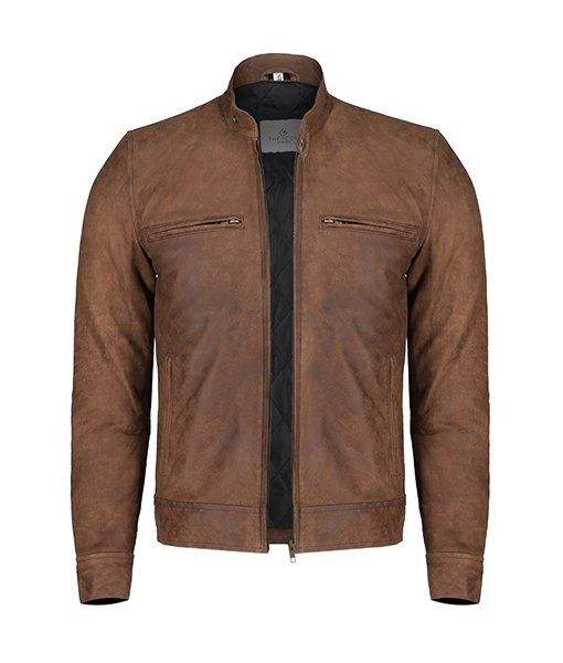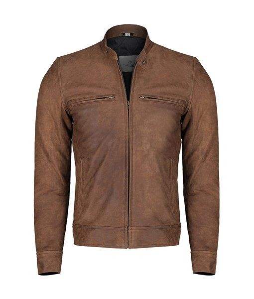 Matsumoto Light Brown Biker Leather Jacket For Men