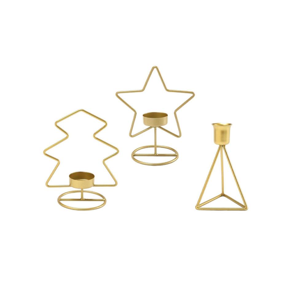Matt Black Christmas Tree Shape Aluminum Candle Holder with 3 Stand for Tabletop and Halloween Decoration Handmade
