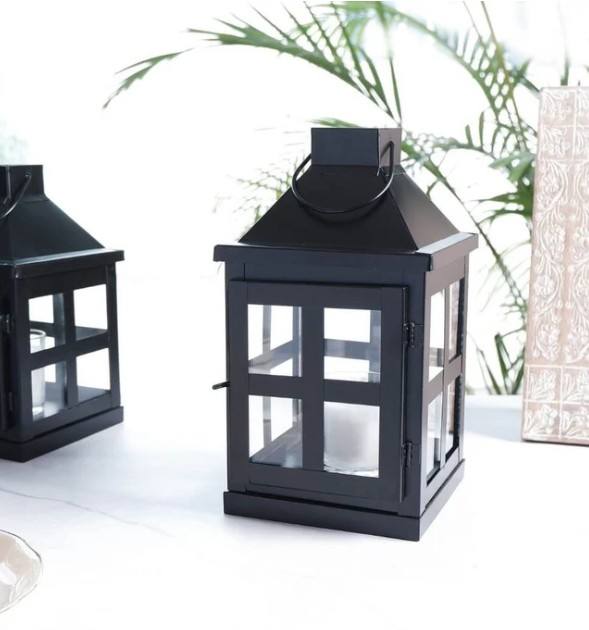 Matt Black Metal Lantern Decorative Candle Holder for Home Garden Patio and Indoor Outdoor Hanging & Table Top Decoration Usage