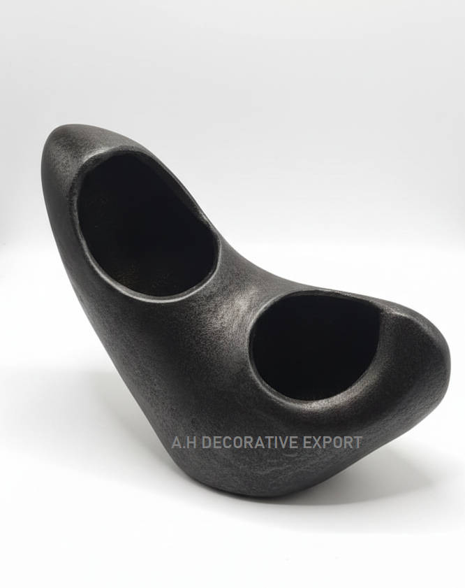 Matte Black Abstract Dual-Pocket Aluminium Planter Modern Minimalist Stone-Textured Indoor Pot for Wedding Home Decor