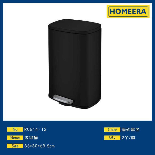 Matte Black Finish 30L Stainless Steel Rectangular Trash Bin Soft Close Lid Office Use Foot Pedal Paper Basket Waste Management