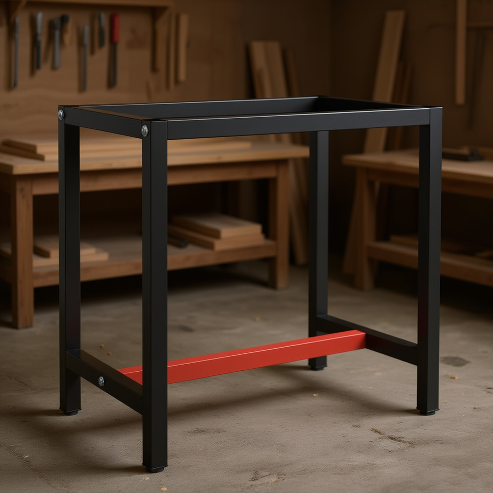 Matte Black And Matte Red Powder Coated Metal Workbench Frame Durable For Woodworking