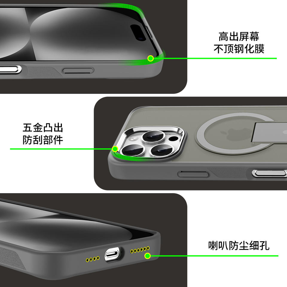 Matte Frosted TPU Silicone Magnetic Phone Case for 15 16 17 Pro Max Strip Stand & Cover
