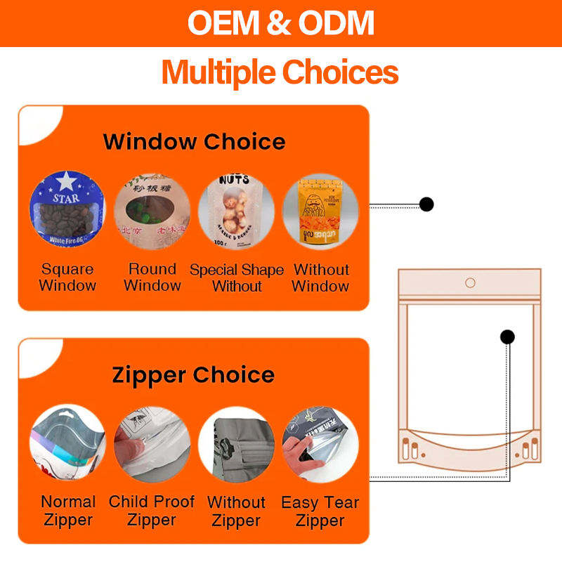 Sealing & Handle:Eurohole/Hanginghole/D-cut/Zipper/Slider/Spout/Handle/Heat Seal