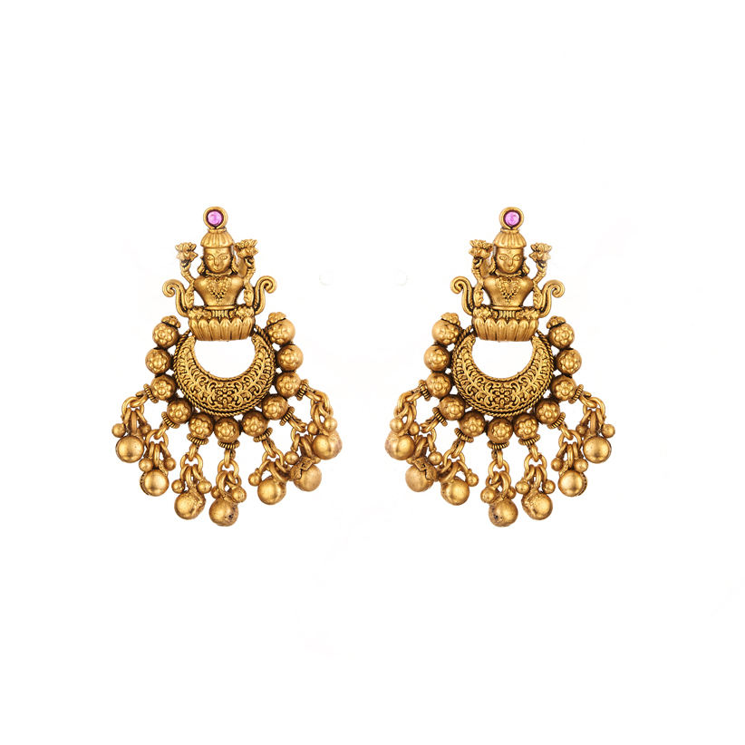 Matte Gold Plated Antique Chand Style South Indian Temple Earring 205373 Wholesalers in India