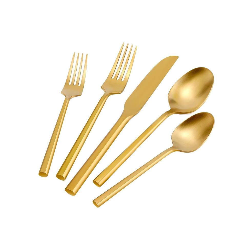 Matte Gold & Silver Flatware Set with Heavy Brass Drip Handle Brushed Finish Stainless Steel Cutlery