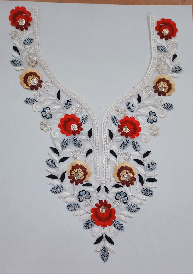 Matte Satin Embroidered Collar with Tonal Stitch Details