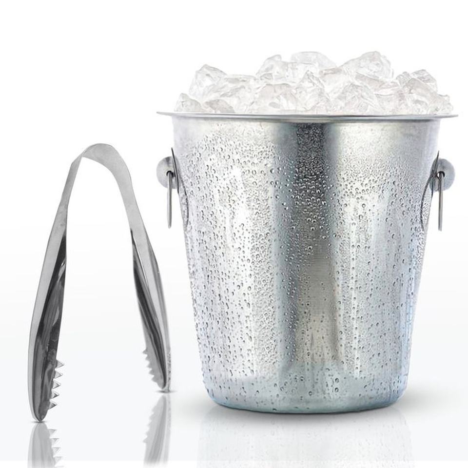 Matte finishing Stainless Steel Metal Ice Bucket with Tong for Chilled Drinks and Easy Serving Metal Cooler