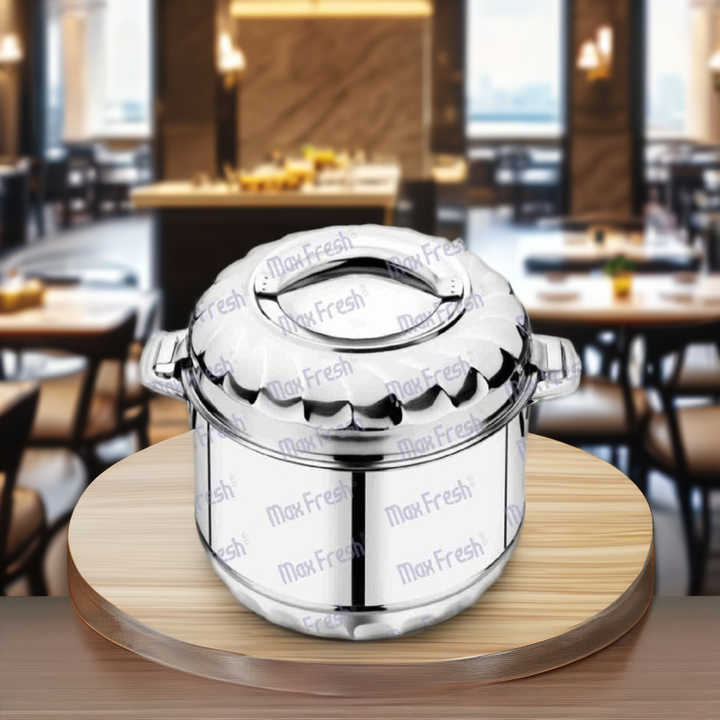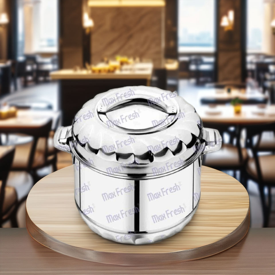 Maxfresh 3500 ML Insulated Stainless Steel Hotpot Solitaire Casserole for Restaurant Use Export Quality Metal Keeps Food Warm