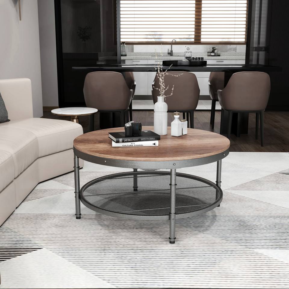 Maxine Metal Frame Wood Top Side Nesting Stool Side Table Bedroom Round Side Coffee Table Set of 2