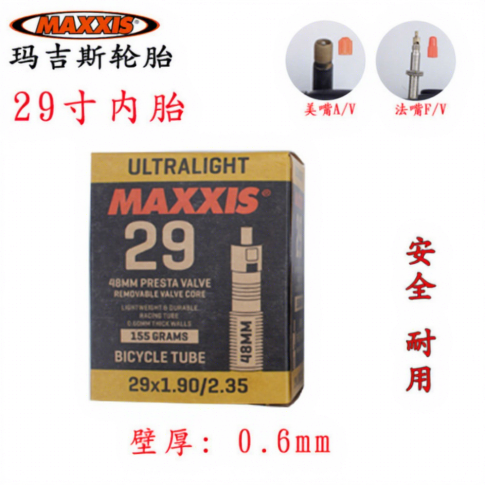 Maxxis 29 Inch Bicycle Inner Tube 29x1.90/2.35 Brass Presta Valve Ultralight 48mm Valve Core