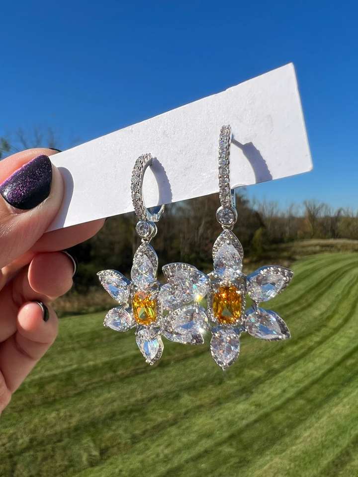 May Flower Bridal Earring Yellow Zircon Super Luxury Shining Long Tassel Earring 925 Sterling Silver Drop Dangle Perfect Jewelry