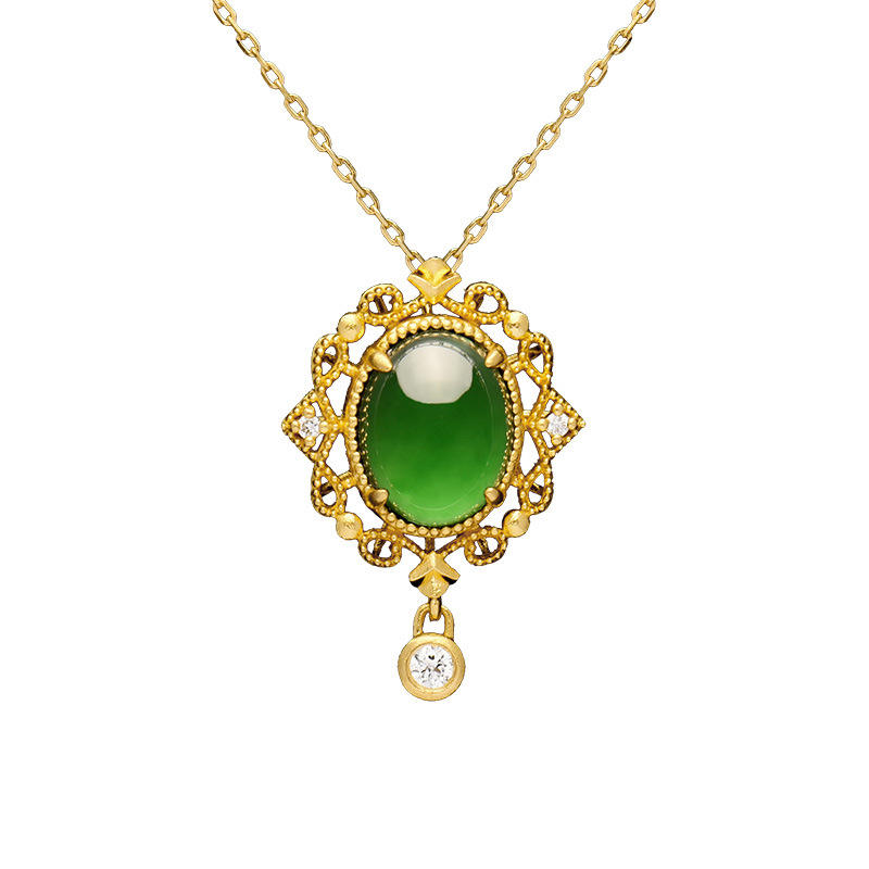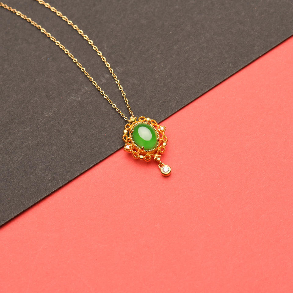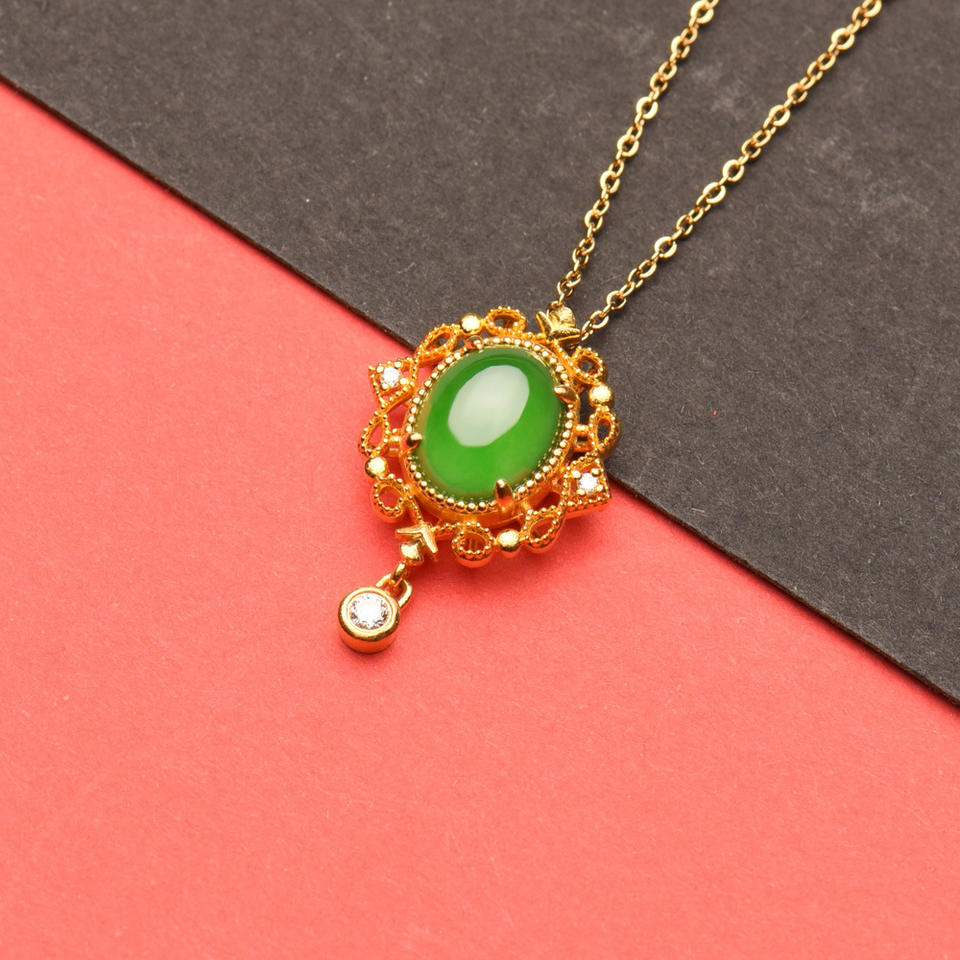 Maya Green Jade feicui Pendant Natural A-grade Jade Large Egg-shaped Pendant Ice-grade 24K Gold Necklace Factory Wholesale