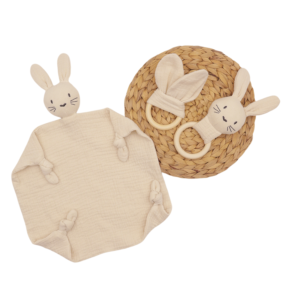 Maydow Breathable Cotton 30x30cm Mesh Lining Bunny Newborn Baby Swaddle Blanket with Stress Relief