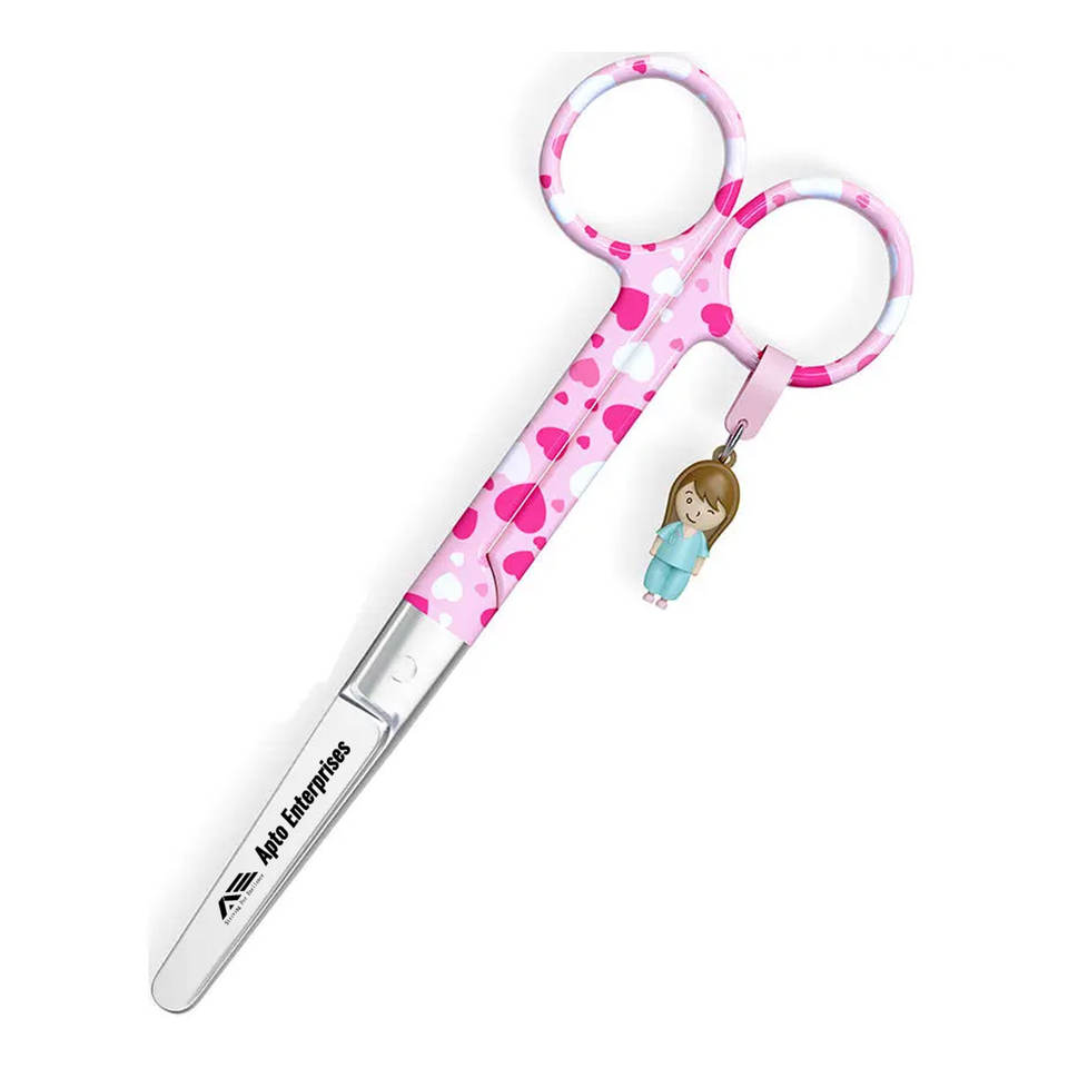 Mayo Nursing Scissors Heart Pattern Design on Pink Background Stainless Steel Manual Medical Scissors Safe Precise Cutting