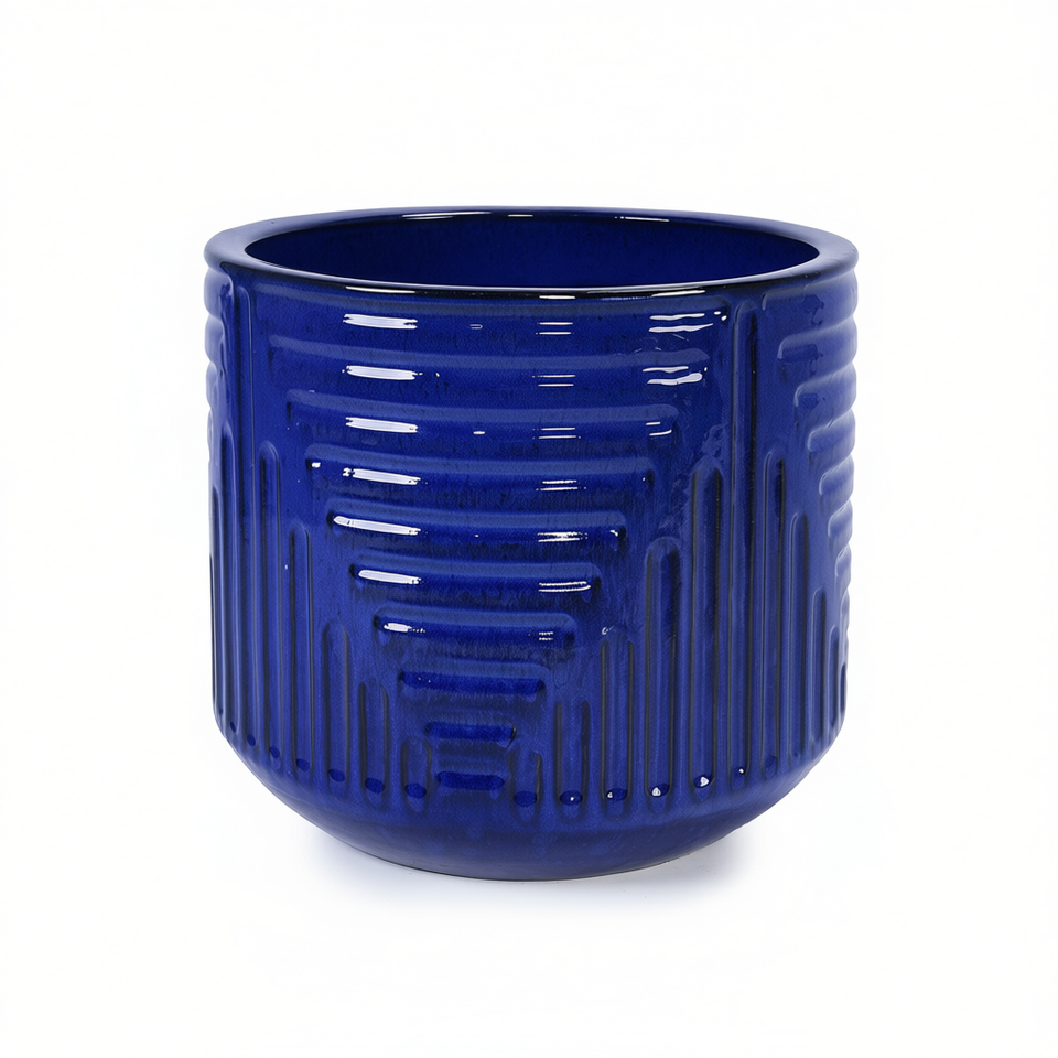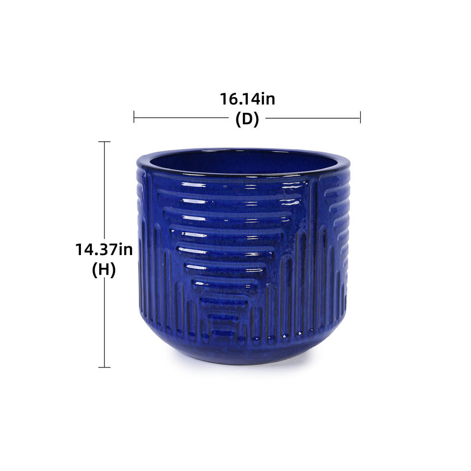 Mdj Ceramic Flower Pot 38.1cm Round Glazed Planter Indoor Outdoor Garden Home Decor Blue Modern Minimalist Style