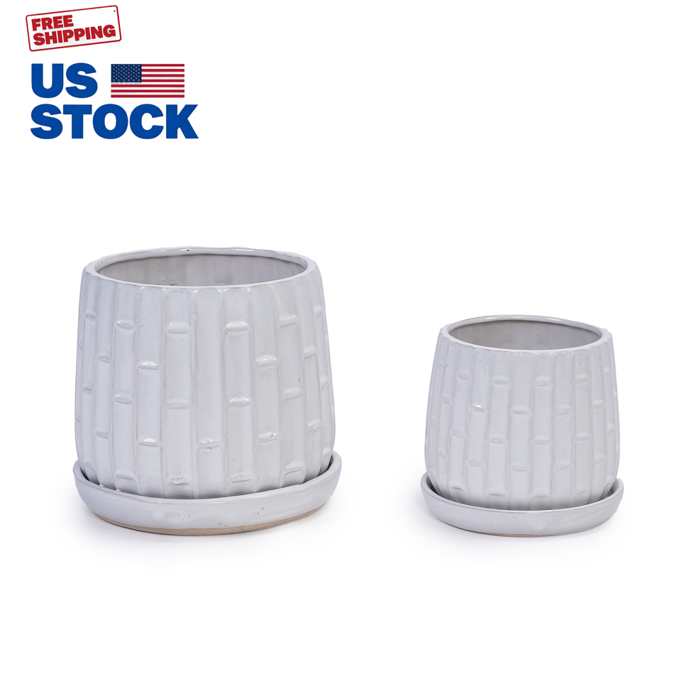 Mdj Ceramic Flower Pots Set Of 2 Round With Drainage Hole For Indoor Outdoor Home Garden Planters Modern Style Glazed Finish