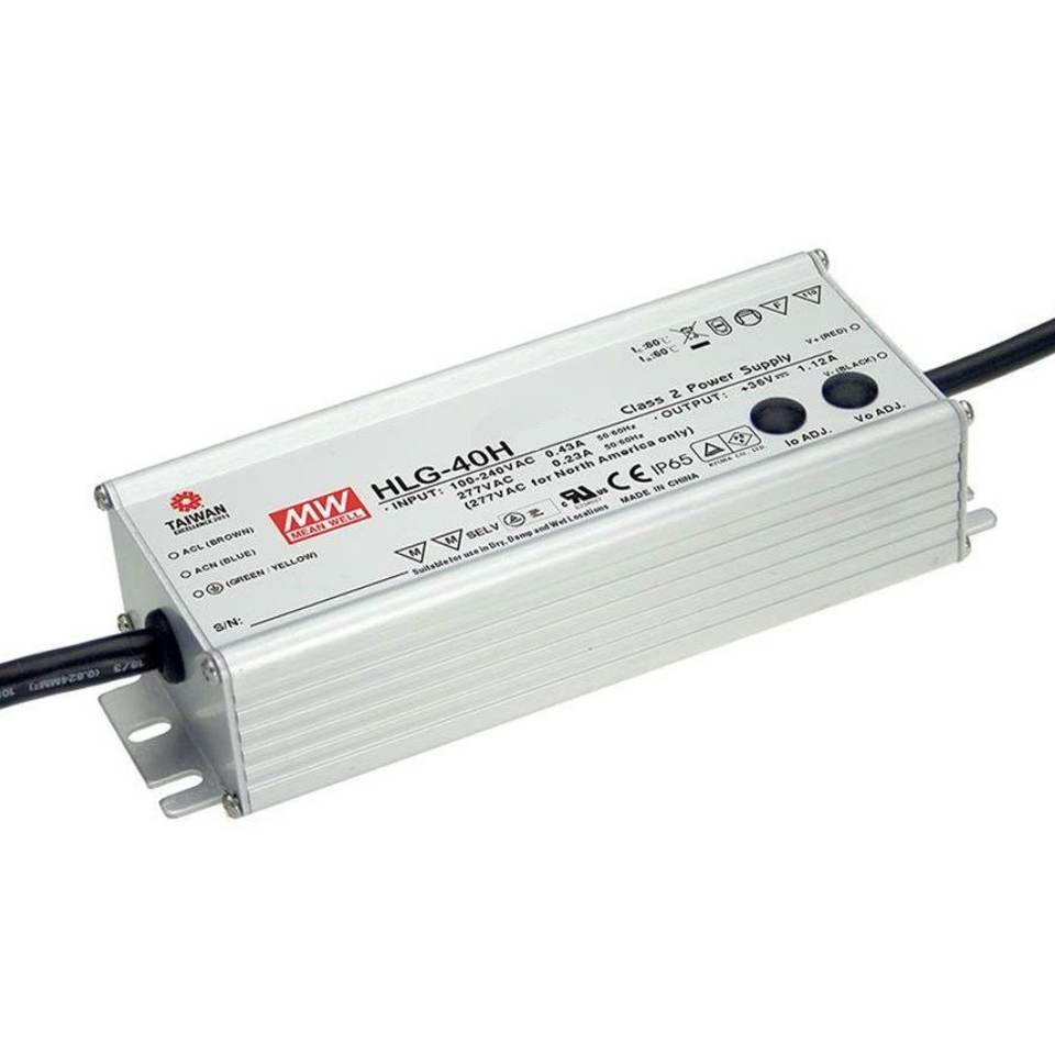 Mean Well HLG-40H-24A 40W LED Driver 24V Constant Voltage Dimmable IP65 Single Channel AC DC Converter