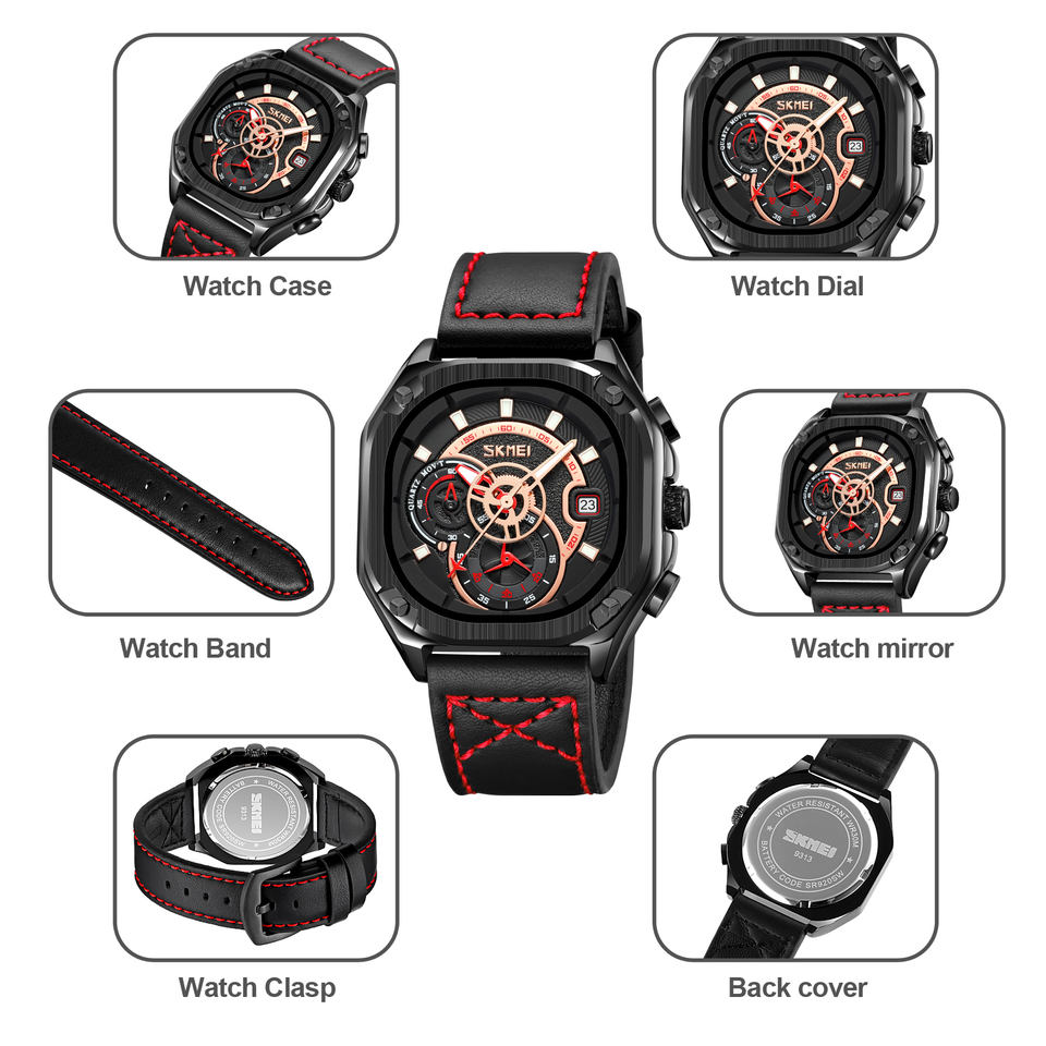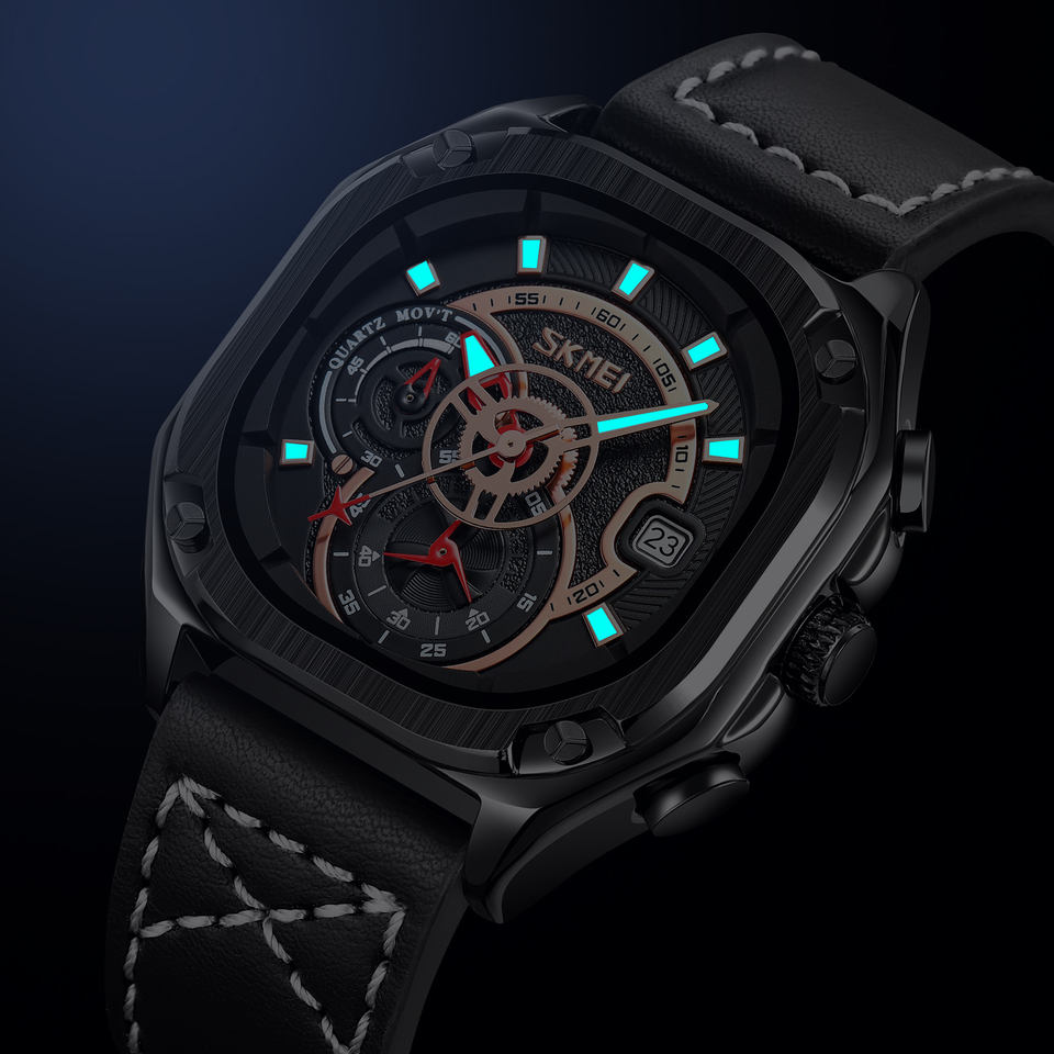 Mechanical Style Multi-function Chronograph Quartz Watches New Style Mens Watch Luxury with Leather Strap Date Display