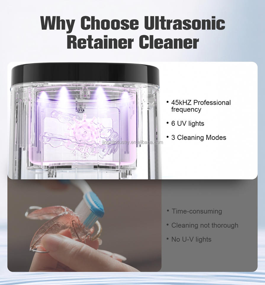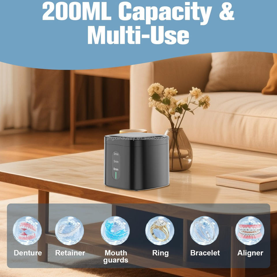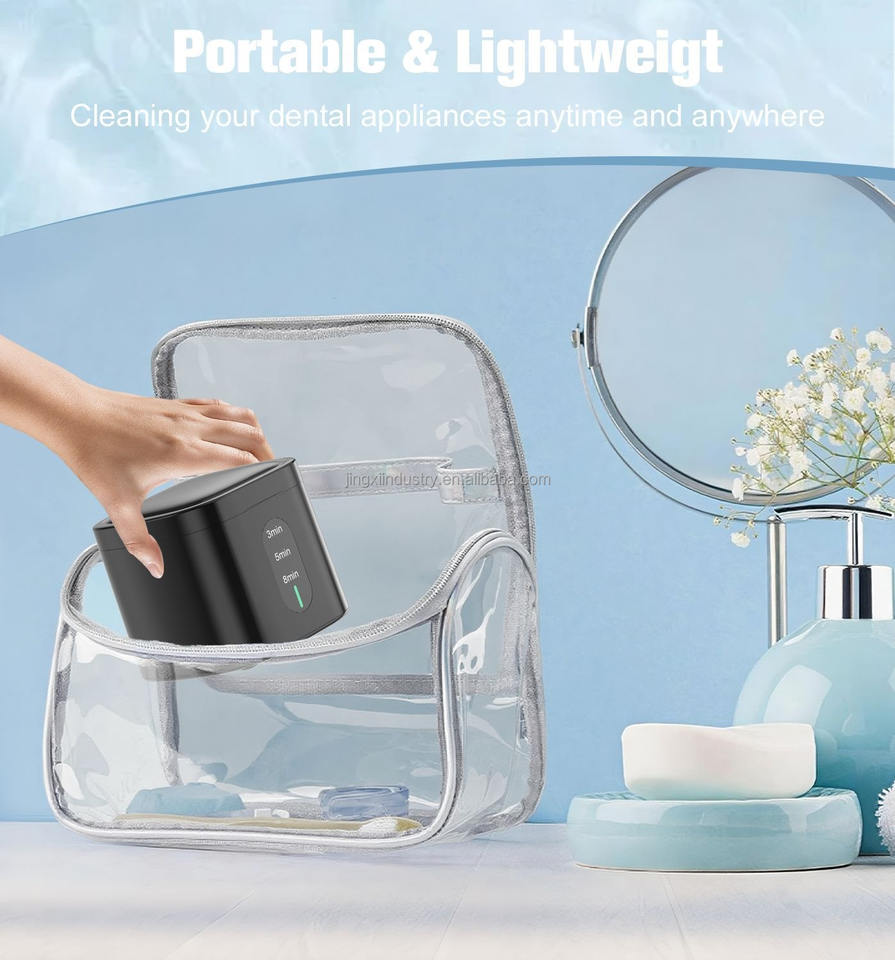 Medical-Grade IPX6 Waterproof Ultrasonic Cleaner Dual 50kHz UVC Stainless Steel for Hygienic Sanitization Oral Devices (150ml