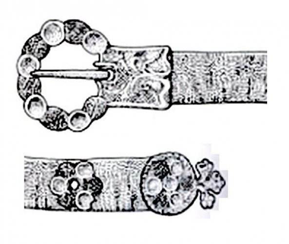 Medieval Style Antiqued Finish Brass Belt Buckle Copper Material with End Fitting Leather Strap Model TT-1173