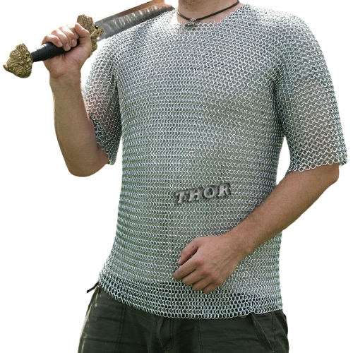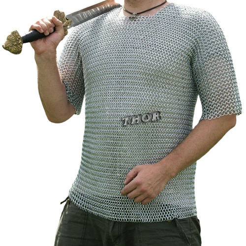 Medieval Chain Shirt Silver Finish Renaissance Haubergeon Warrior Armor Chainmail Shirt Costume