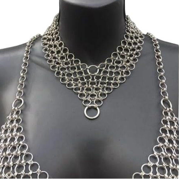 Medieval Fantasy Antique Steel Chainmail Crop Halter Bra Mini Skirt/Belt Polished Steel Bikini Cosplay Gift with Metal Necklace