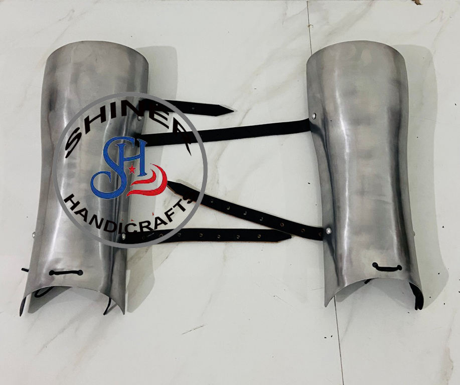 Medieval Gladiator Greaves Leg Guard Armor Set 18 Gauge Steel Armor Leg Guard Silver Finish Crusader Knight Costume Halloween