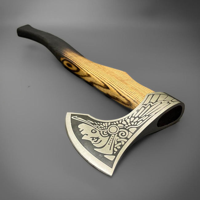 Medieval Gothic Larp Axe DIY Industrial Grade with Wooden Handle for Camping for Medieval Hunters and Vikings
