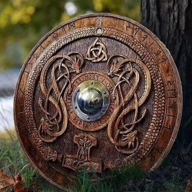 Medieval Handcrafted Carved Norse Runic Shield Wooden Shield Ornaments 22 Inches