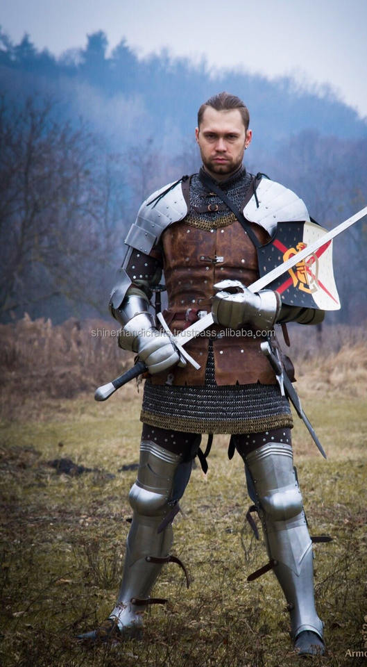 Medieval Knight Half Body Armor Suit Set Wearable 15Th Century Silver Cosplay Battle Ready Suit of Armor Halloween Costume