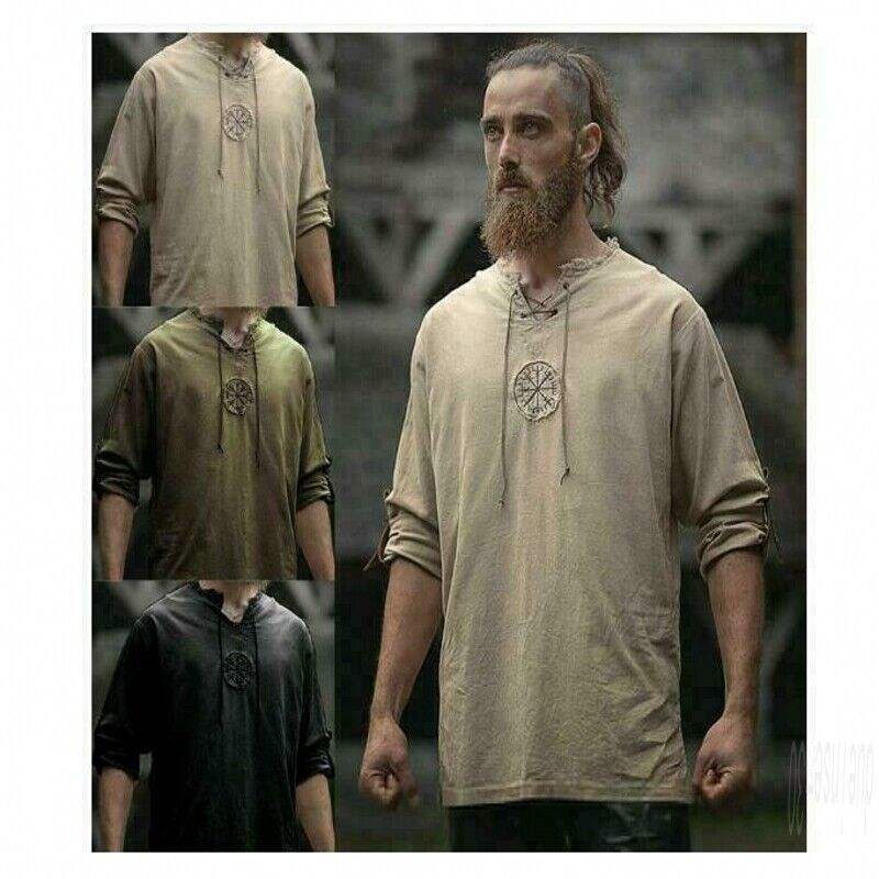 Medieval Mens Tops Vintage Linen Ancient Retro Cosplay Costume T-shirt
