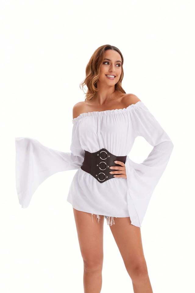 Medieval Renaissance Long-Sleeved Blouse Tunic Halloween Costume Corset with Pirate Blouse Lady Black and White Suits