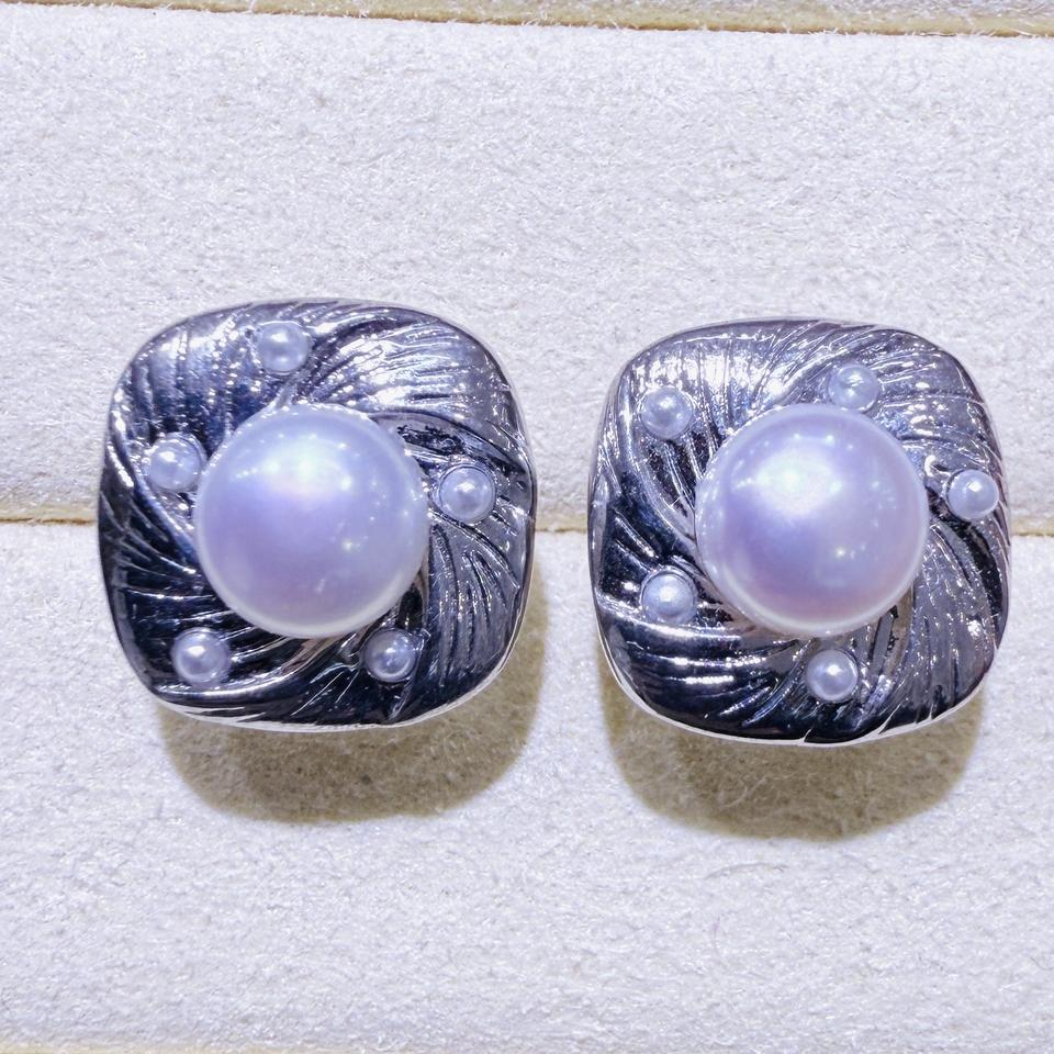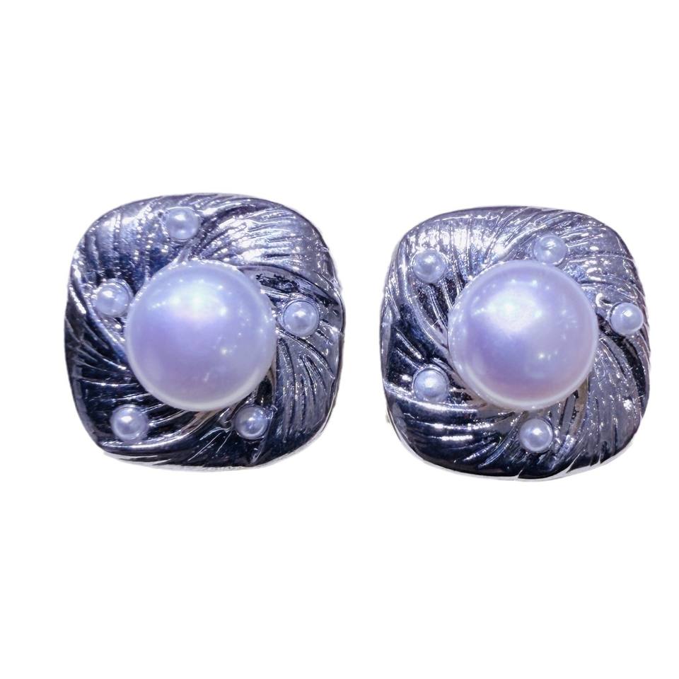 Medieval Retro Court Style S925 Silver Ear Needles Classic Square Freshwater Pearl Earrings