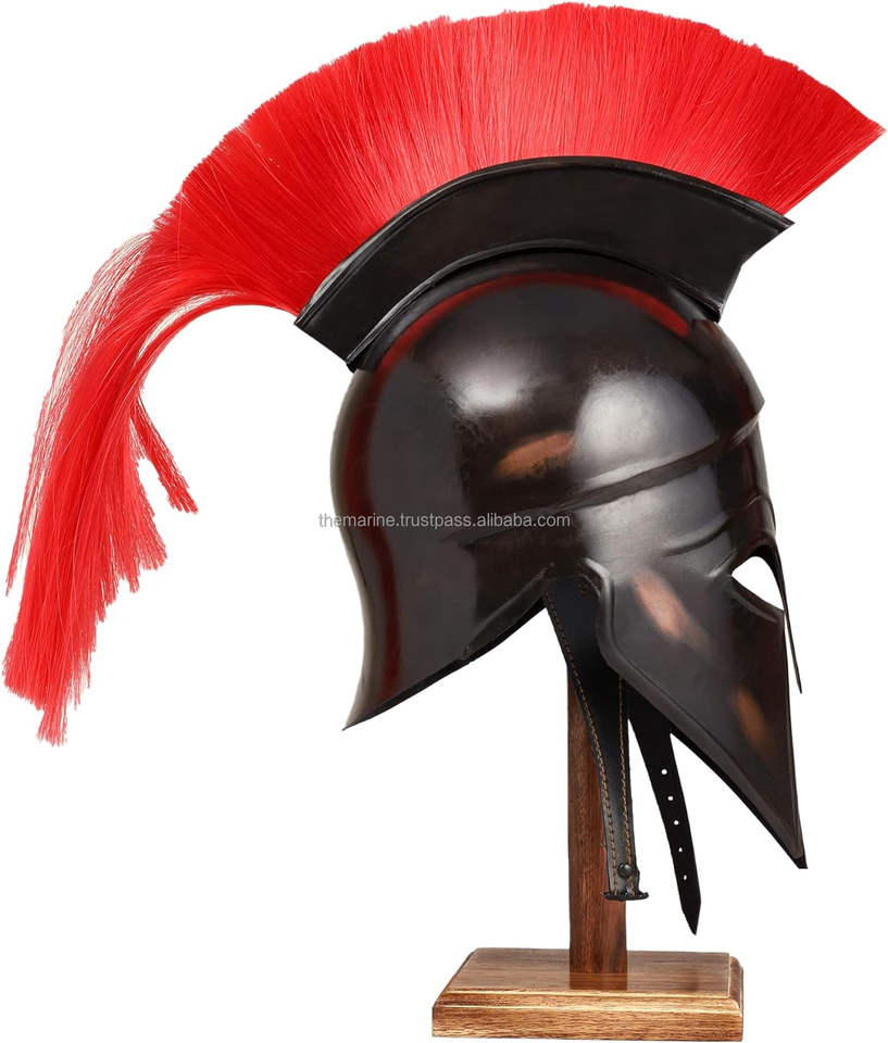 Medieval for Spartan Greek Corinthian Helmet Red Hair Plume Polished Steel Armour Metal for LARP SCA Role Play Halloween Party