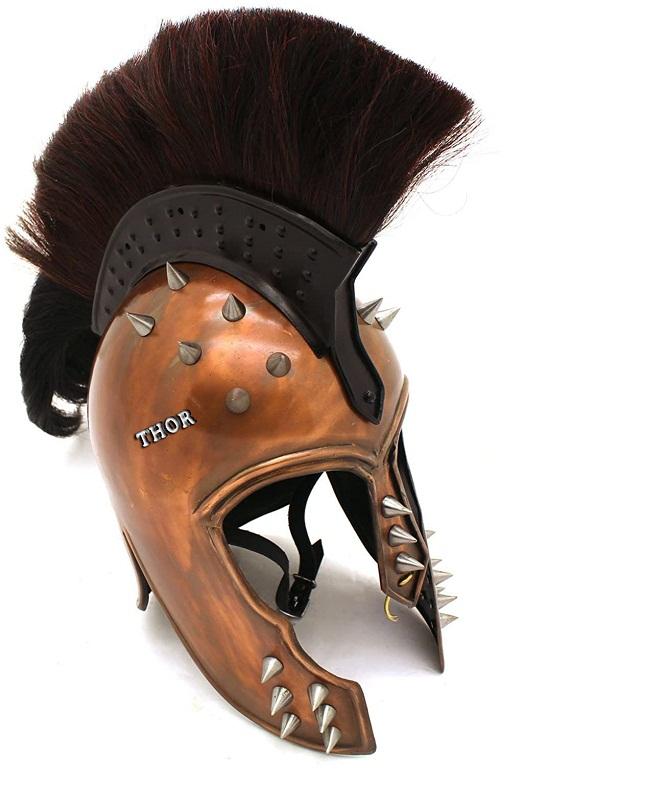 Medieval Warrior Brand 18G Steel Punk Trojan Helmet W/Ponytail & Leather Liner Copper