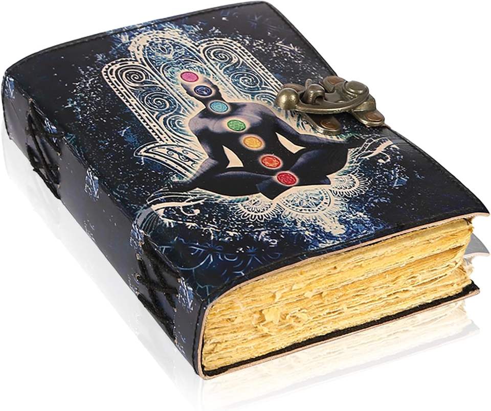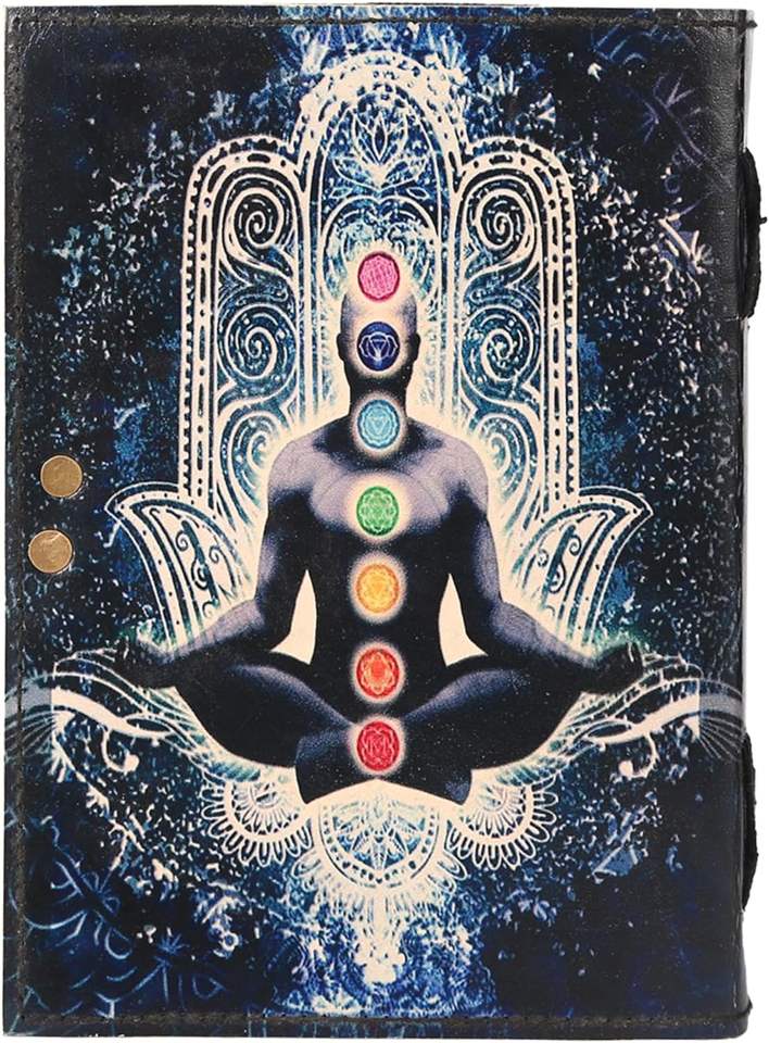 Meditation Buddha Seven Chakra Leather Journal with Sacred Pagan Goddess Vintage Deckle Edge Paper Notebook for Spiritual Seeker