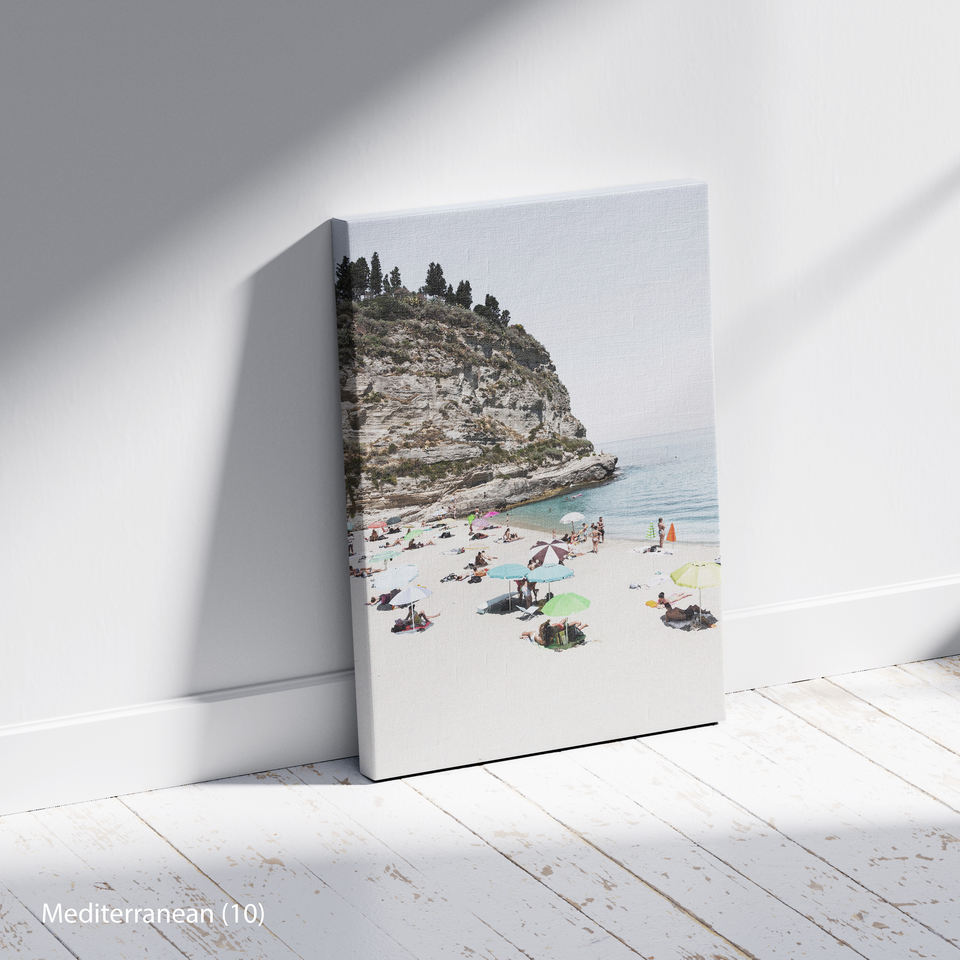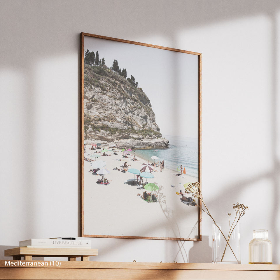 Mediterranean Coastal Beach Modern Painting on Canvas with Wood Frame Wall Decor
