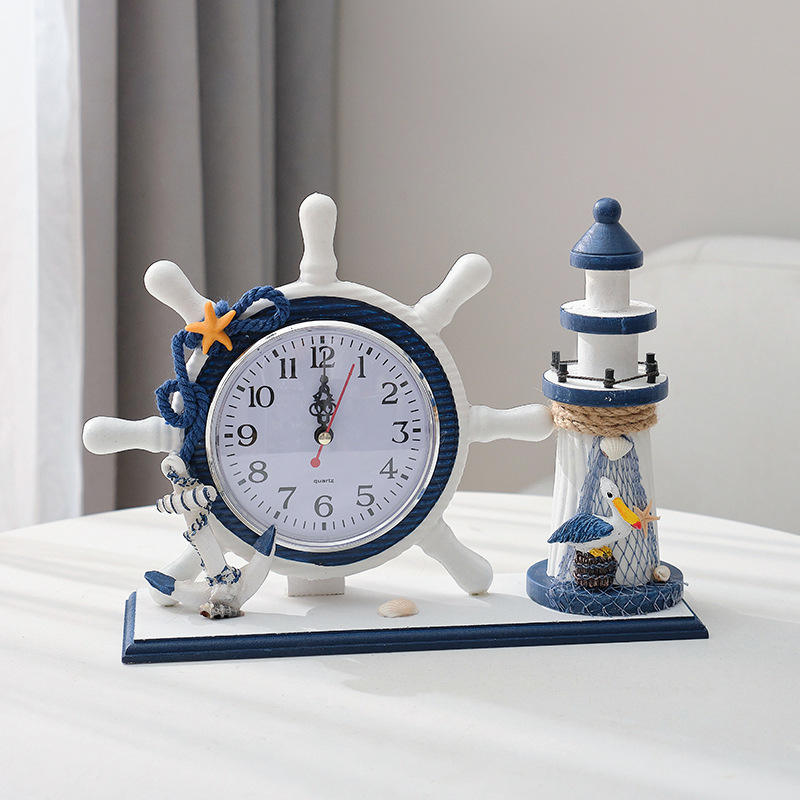 Mediterranean Style Table Clock With Pen Holder Polyresin Silent Desk Clock For Living Room Bedroom
